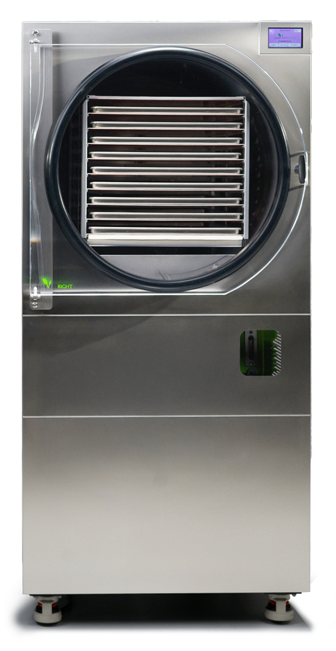 Built by Harvest Right on proven technology, the HRC100 can process 65–100 lbs of product per batch, depending on the material. This makes it the perfect solution for businesses that want to start or expand freeze drying production without investing millions in equipment and infrastructure.